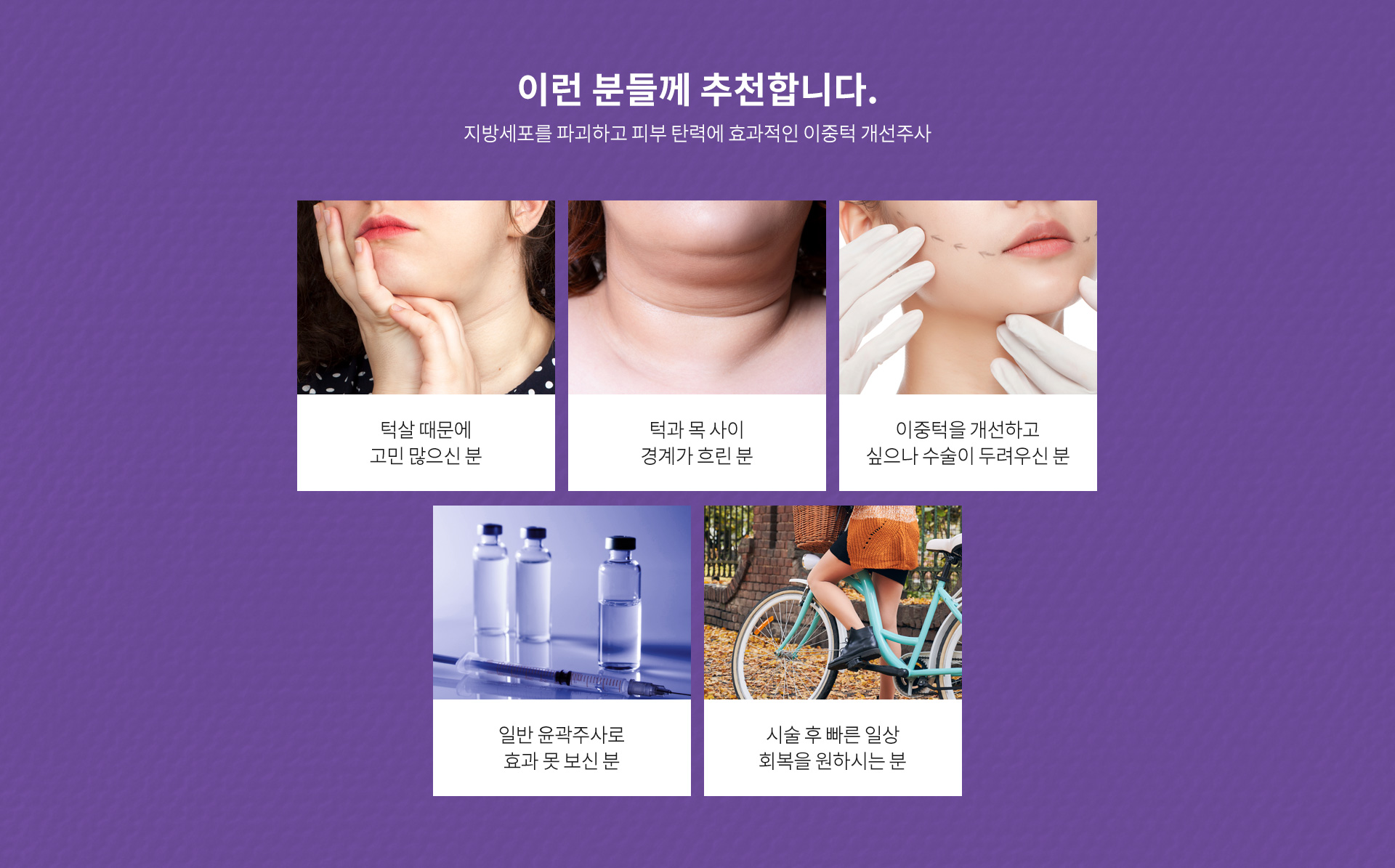이중턱 개선주사는 데옥시콜산(DCA) 성분을 이용한 주사 시술로, 이중턱 지방 제거에 효과적입니다.